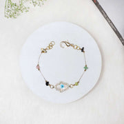 Multi Tourmaline Chips Hamsa Hand Charm Chain Bracelet