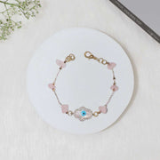 Rose Quartz Chips Hamsa Hand Charm Chain Bracelet