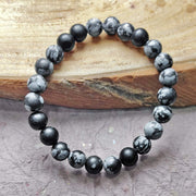 Snowflake Obsidian Chips Stone Elastic Bracelet